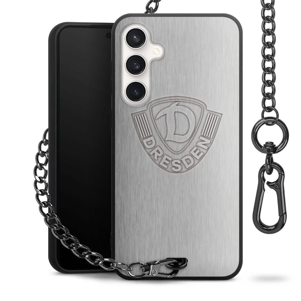• Mattschwarze Handyhülle mit Metallkette
