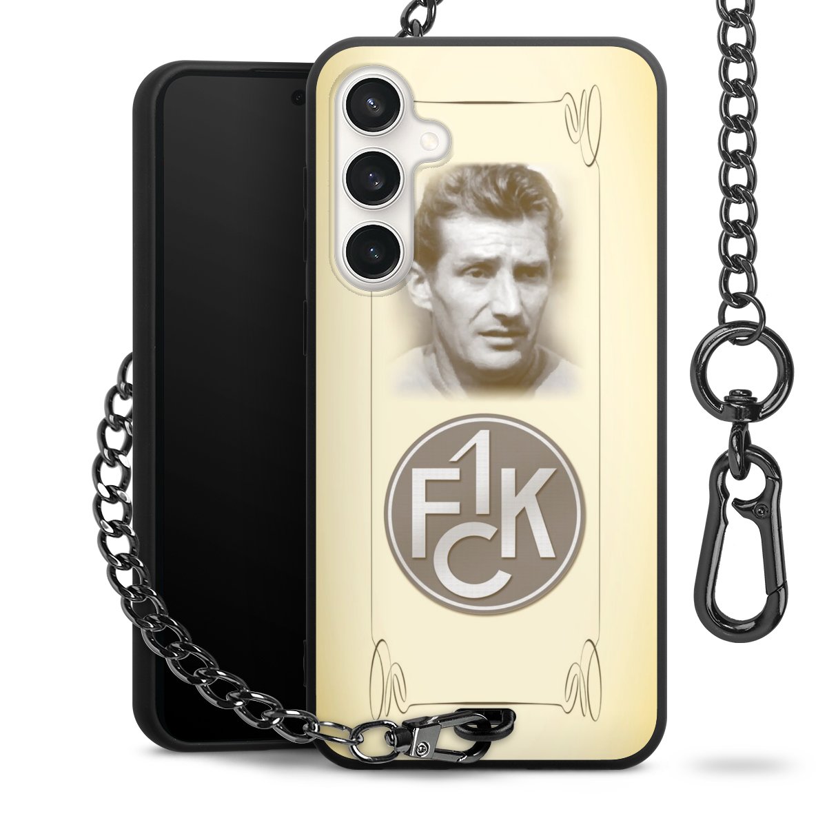 Die Handyhülle verfügt über eine mittig am unteren Rand platzierte Öse, an der die Metallkette stabil befestigt ist. Bestelle die Hülle einfach für Dein Smartphone-Modell, dann passt sie wie angegossen und Du brauchst sie bloß einmal anzudrücken. Handy in die Tasche, Karabiner an den Hosenbund – schon kann die Party starten.