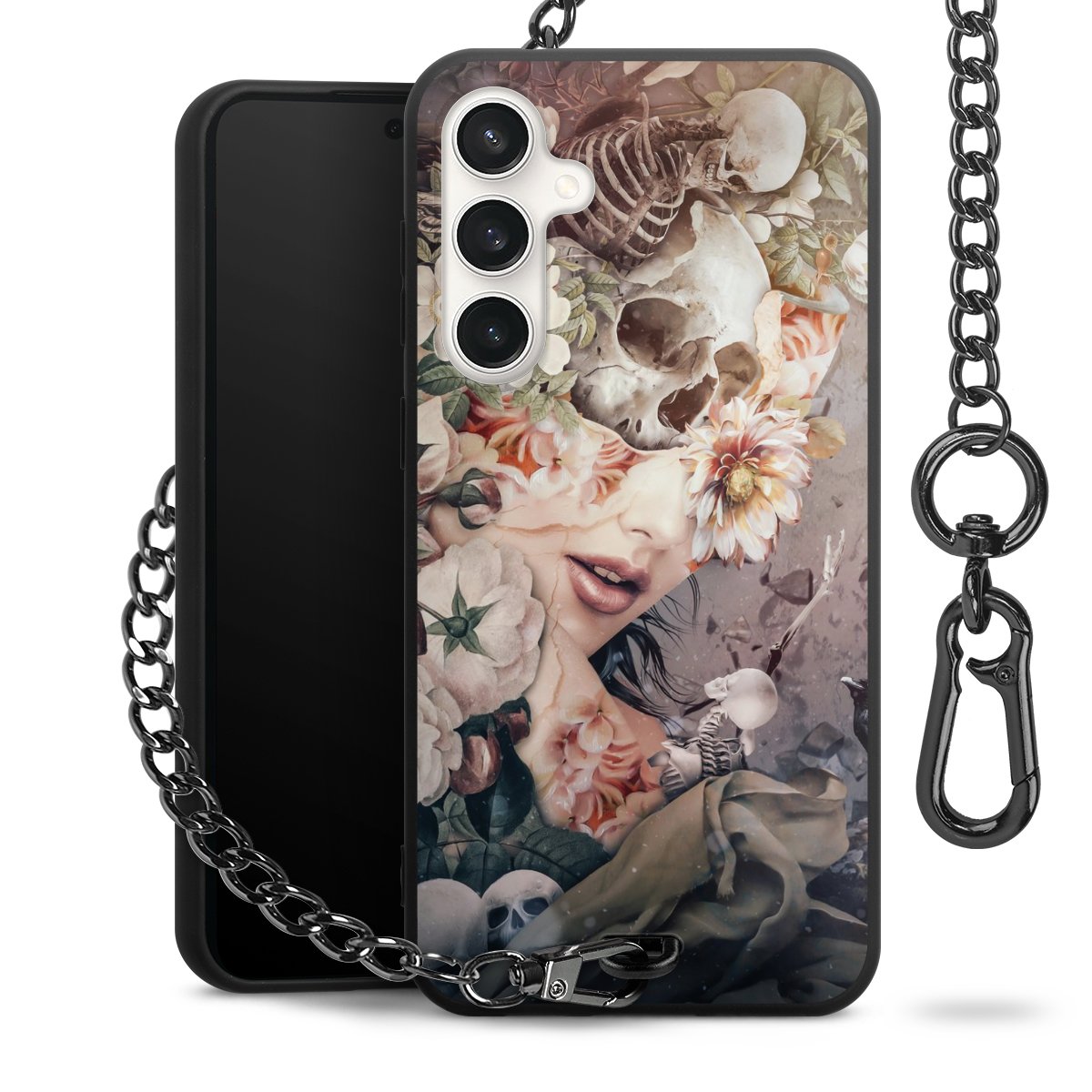 Die mattschwarze Silikon-Handyhülle besteht aus robustem TPU (thermoplastisches Polyurethan). Sie ist flexibel und schützt Dein Smartphone vor Stößen und Kratzern. Die Kette sowie der Karabinerhaken sind aus Metall in Gunmetal-Optik gefertigt. Für dieses Produkt kommen ausschließlich TÜV-geprüfte Materialien zum Einsatz.