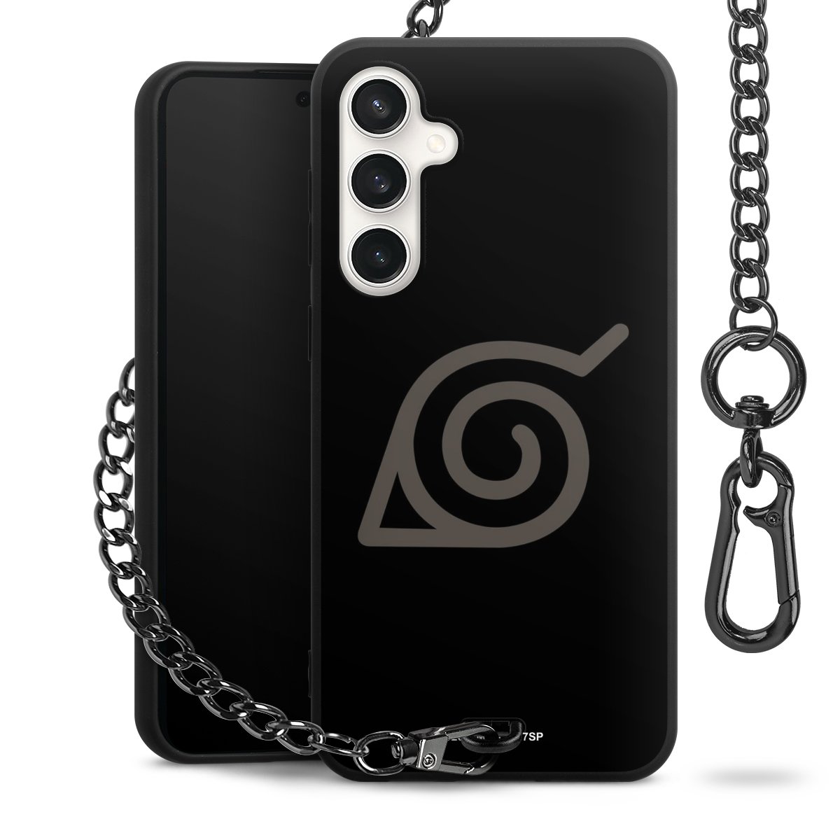 Die mattschwarze Silikon-Handyhülle besteht aus robustem TPU (thermoplastisches Polyurethan). Sie ist flexibel und schützt Dein Smartphone vor Stößen und Kratzern. Die Kette sowie der Karabinerhaken sind aus Metall in Gunmetal-Optik gefertigt. Für dieses Produkt kommen ausschließlich TÜV-geprüfte Materialien zum Einsatz.