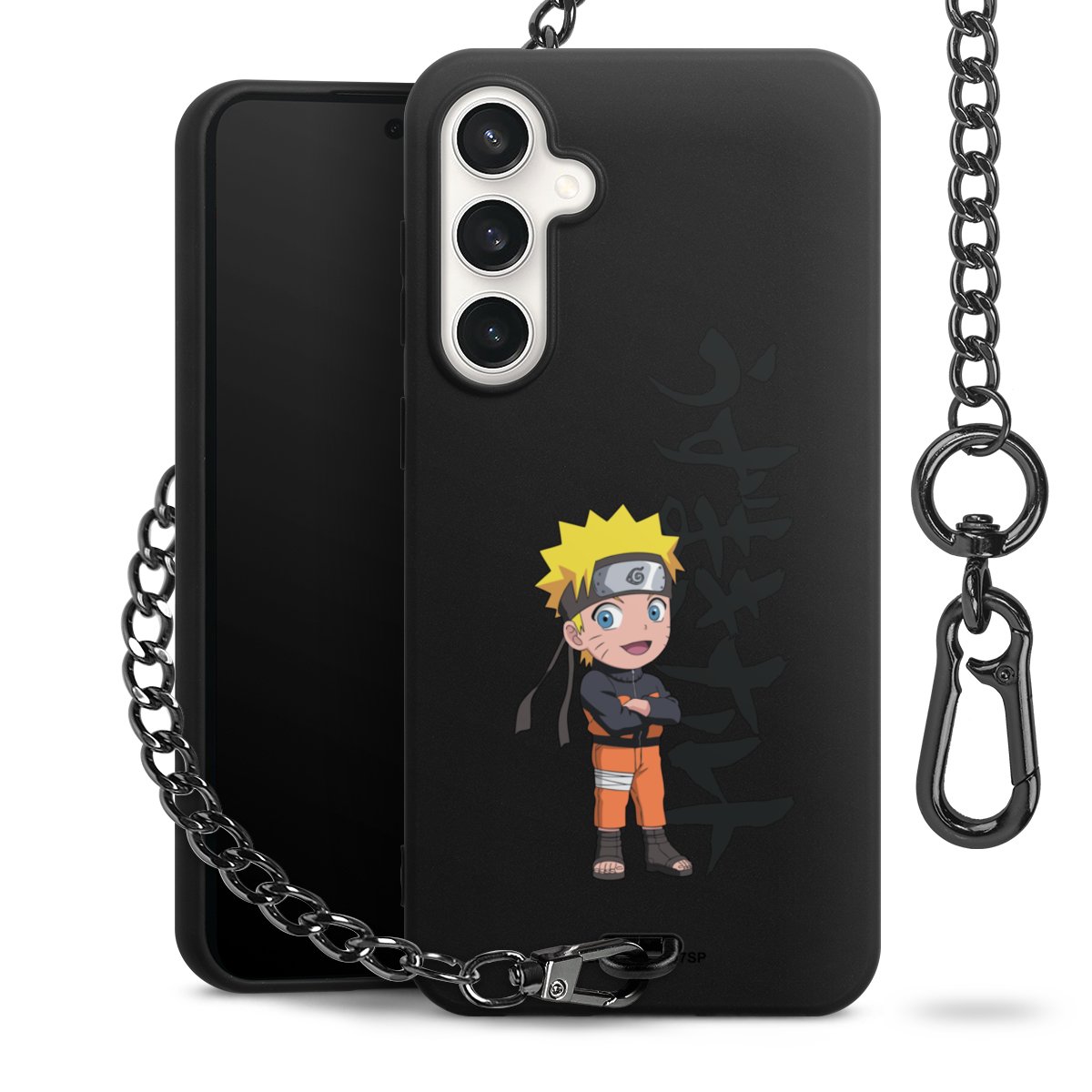 • Mattschwarze Handyhülle mit Metallkette