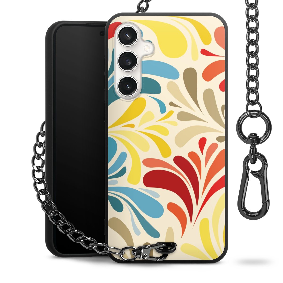 - Mattschwarze Handyhülle mit Metallkette