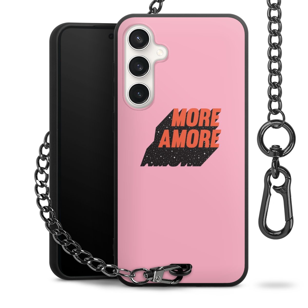 • Mattschwarze Handyhülle mit Metallkette
