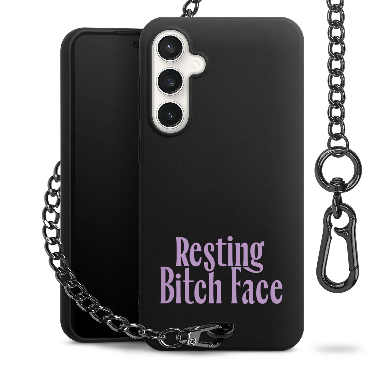 - Mattschwarze Handyhülle mit Metallkette