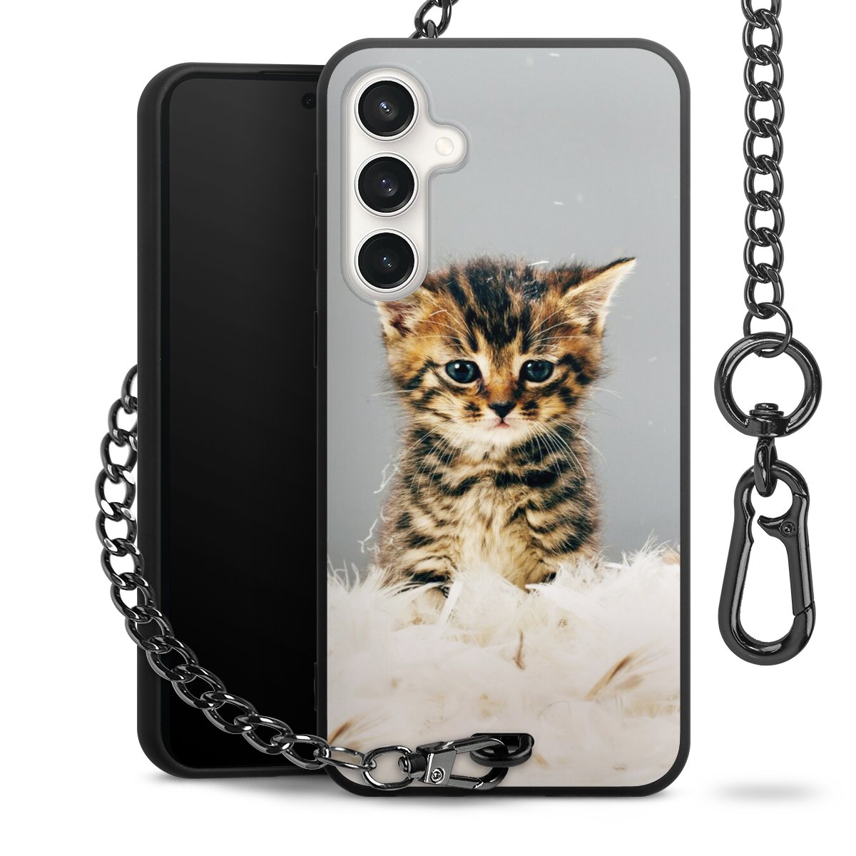 • Mattschwarze Handyhülle mit Metallkette