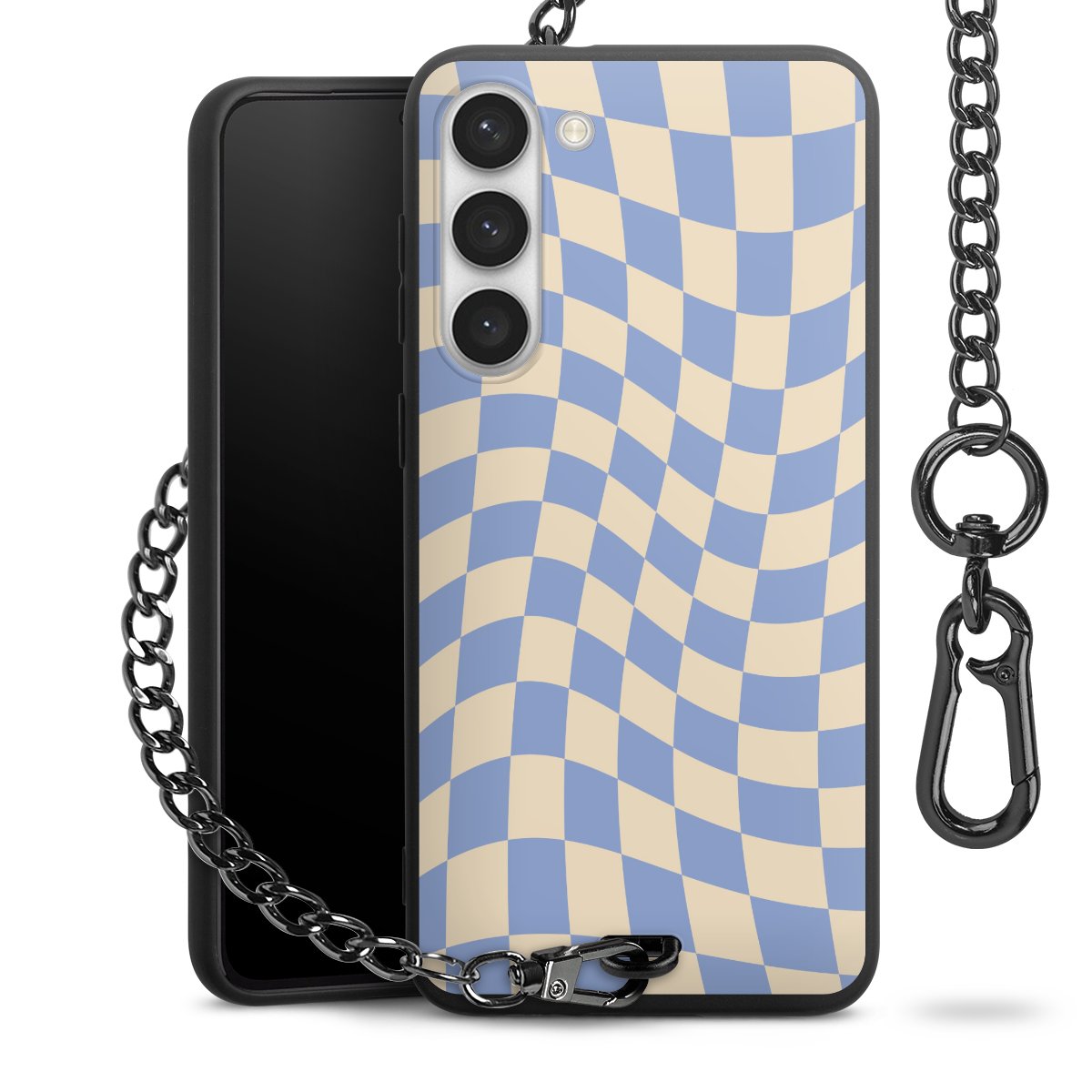 - Mattschwarze Handyhülle mit Metallkette