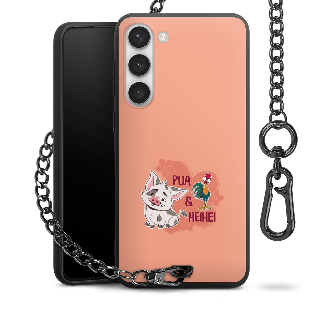 - Mattschwarze Handyhülle mit Metallkette