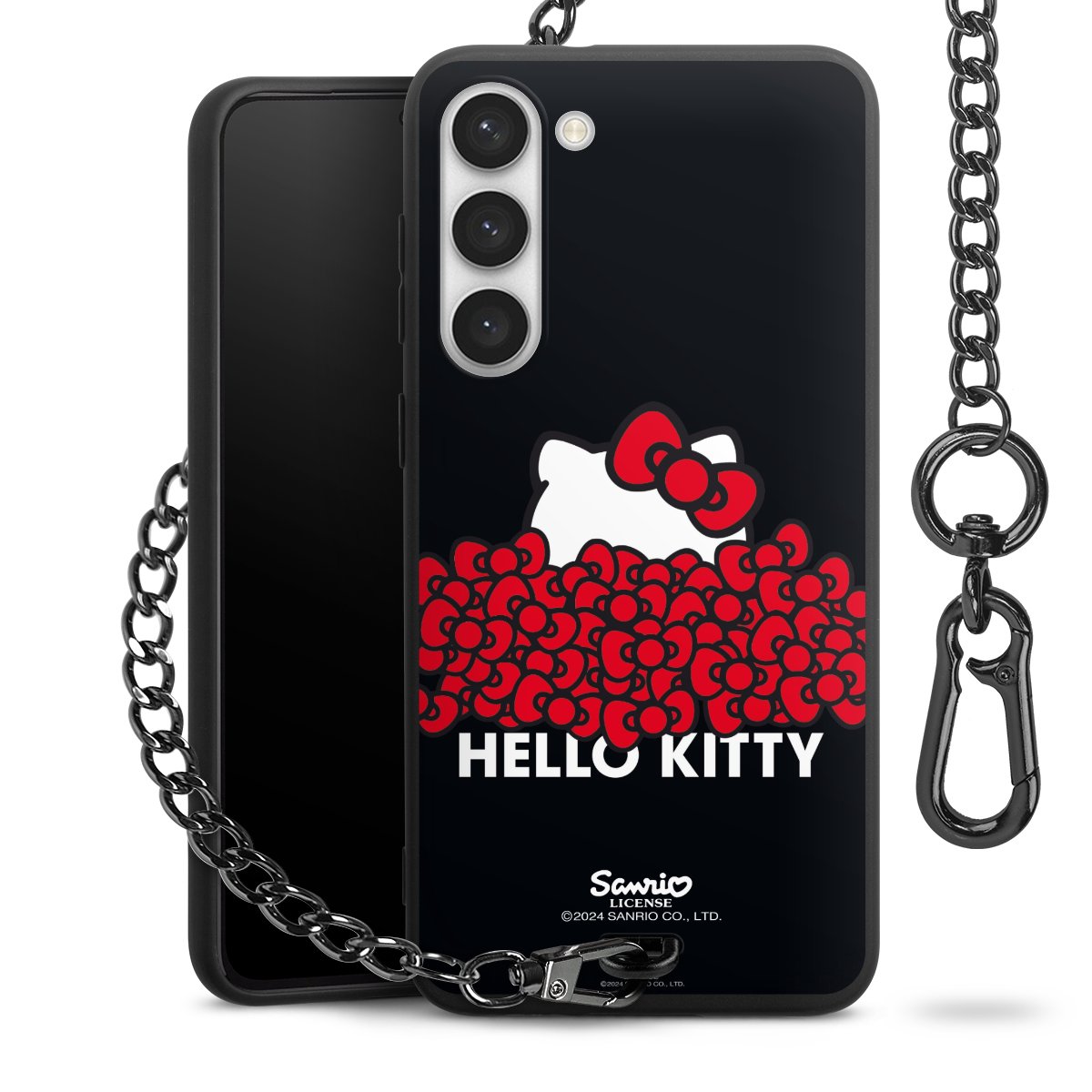 Die mattschwarze Silikon-Handyhülle besteht aus robustem TPU (thermoplastisches Polyurethan). Sie ist flexibel und schützt Dein Smartphone vor Stößen und Kratzern. Die Kette sowie der Karabinerhaken sind aus Metall in Gunmetal-Optik gefertigt. Für dieses Produkt kommen ausschließlich TÜV-geprüfte Materialien zum Einsatz.