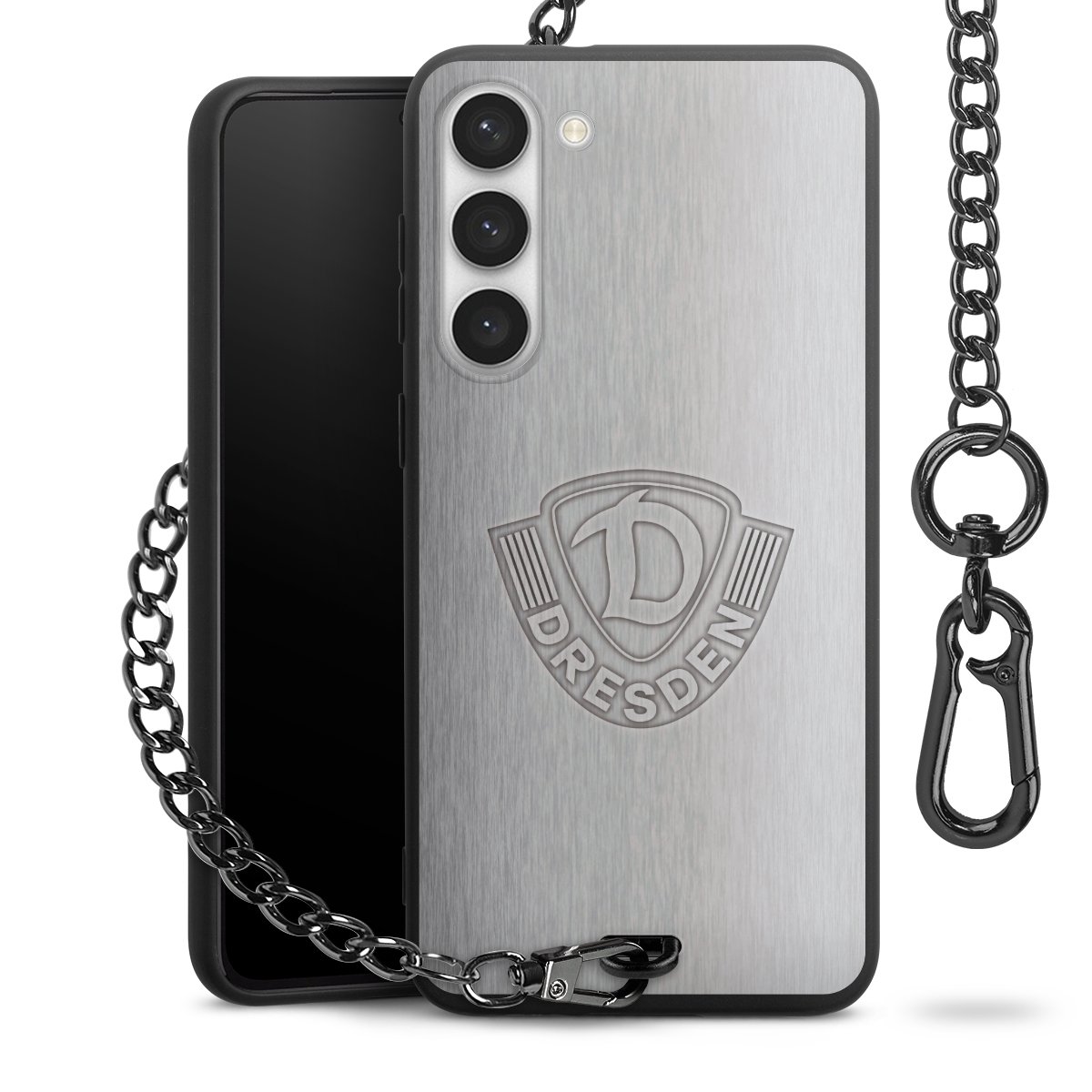 • Mattschwarze Handyhülle mit Metallkette