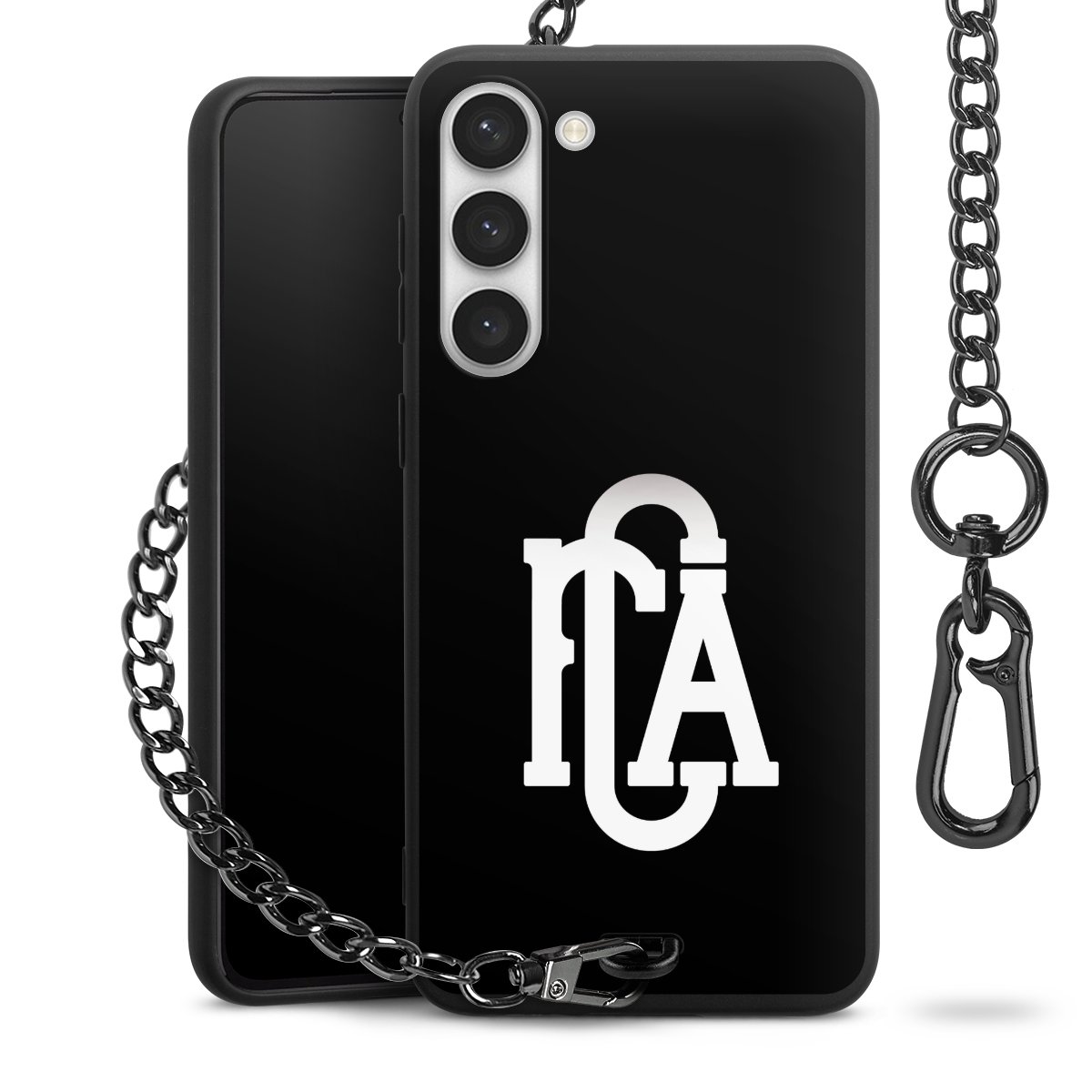• Mattschwarze Handyhülle mit Metallkette