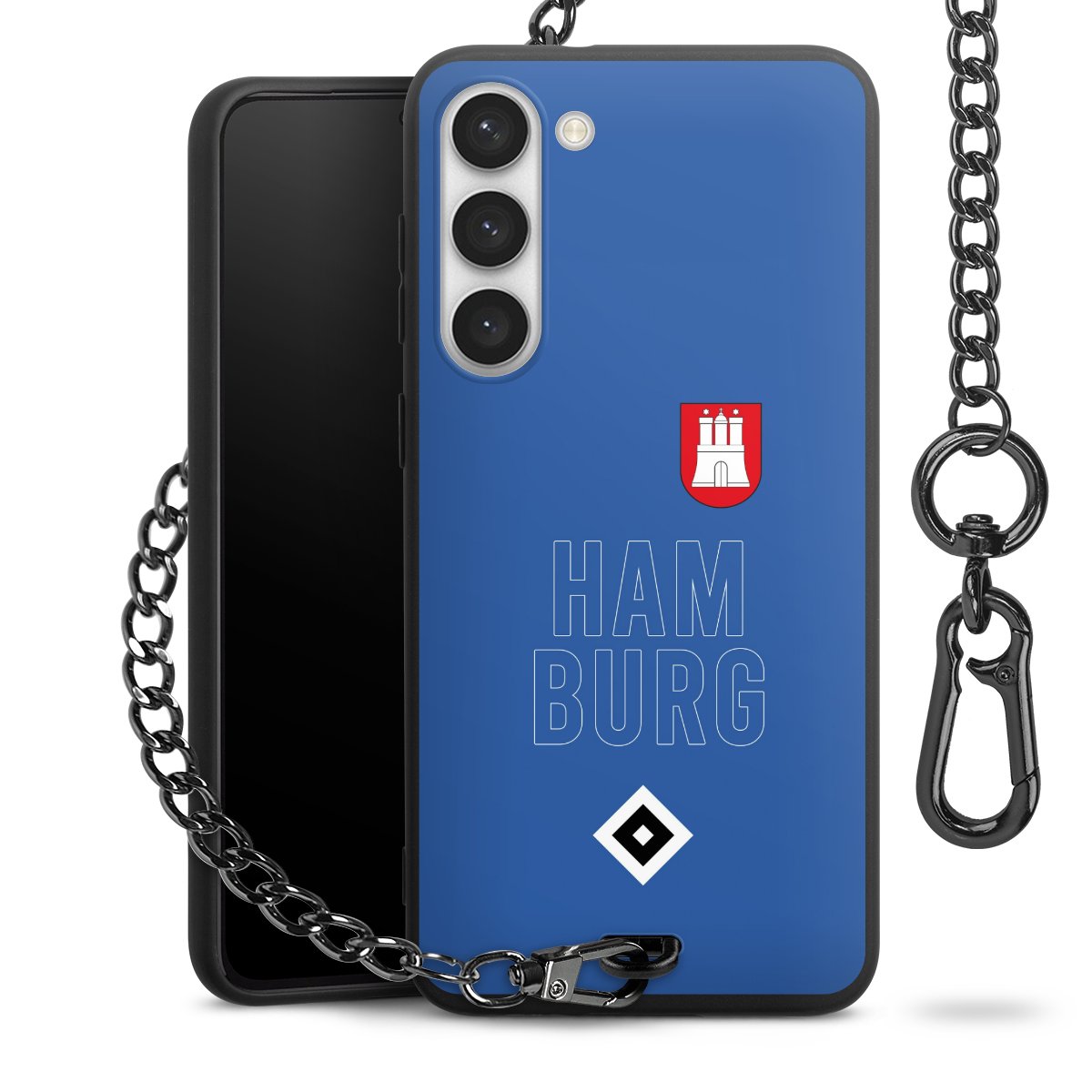 Die mattschwarze Silikon-Handyhülle besteht aus robustem TPU (thermoplastisches Polyurethan). Sie ist flexibel und schützt Dein Smartphone vor Stößen und Kratzern. Die Kette sowie der Karabinerhaken sind aus Metall in Gunmetal-Optik gefertigt. Für dieses Produkt kommen ausschließlich TÜV-geprüfte Materialien zum Einsatz.