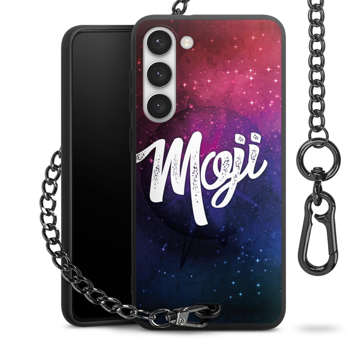 • Mattschwarze Handyhülle mit Metallkette