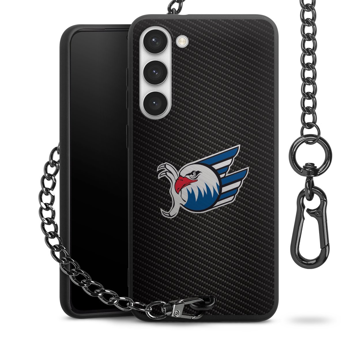 • Mattschwarze Handyhülle mit Metallkette