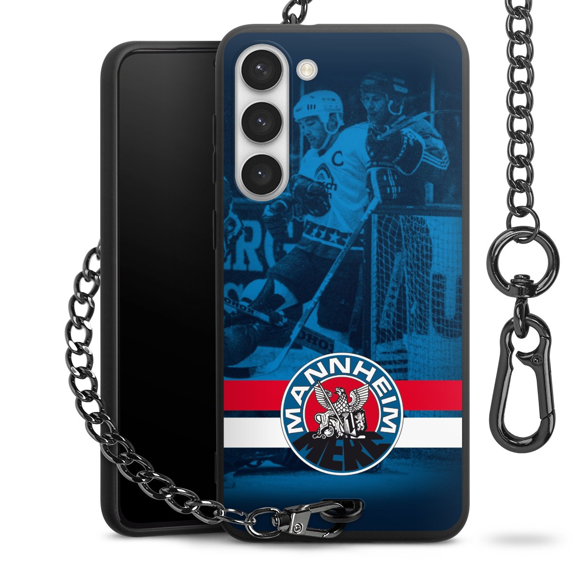 • Mattschwarze Handyhülle mit Metallkette