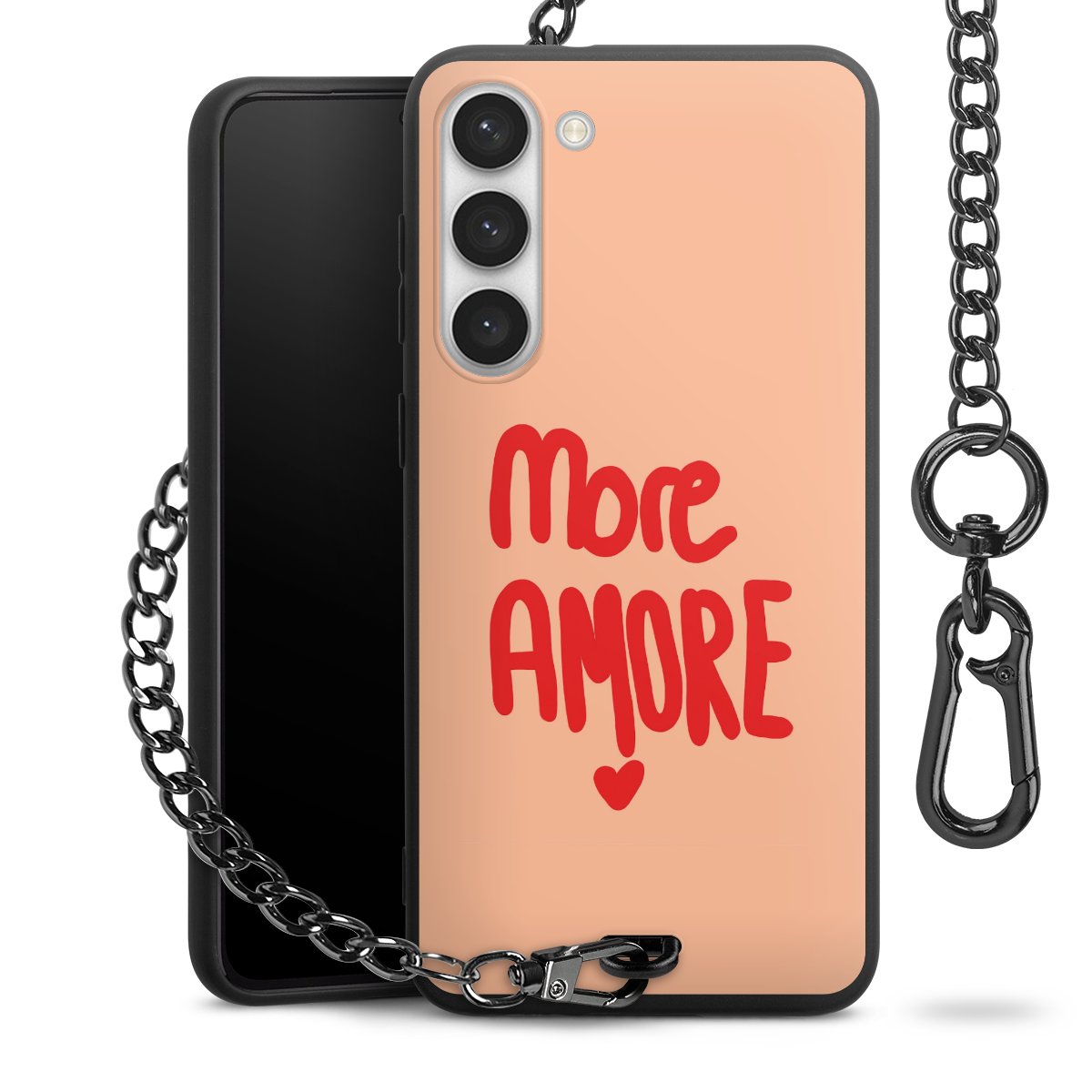 • Mattschwarze Handyhülle mit Metallkette