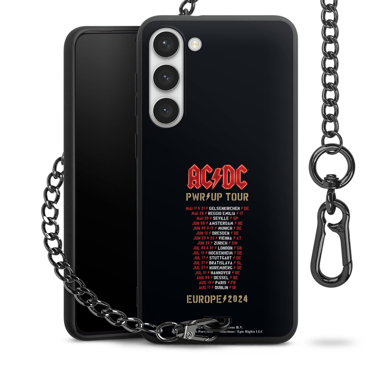 Die mattschwarze Silikon-Handyhülle besteht aus robustem TPU (thermoplastisches Polyurethan). Sie ist flexibel und schützt Dein Smartphone vor Stößen und Kratzern. Die Kette sowie der Karabinerhaken sind aus Metall in Gunmetal-Optik gefertigt. Für dieses Produkt kommen ausschließlich TÜV-geprüfte Materialien zum Einsatz.