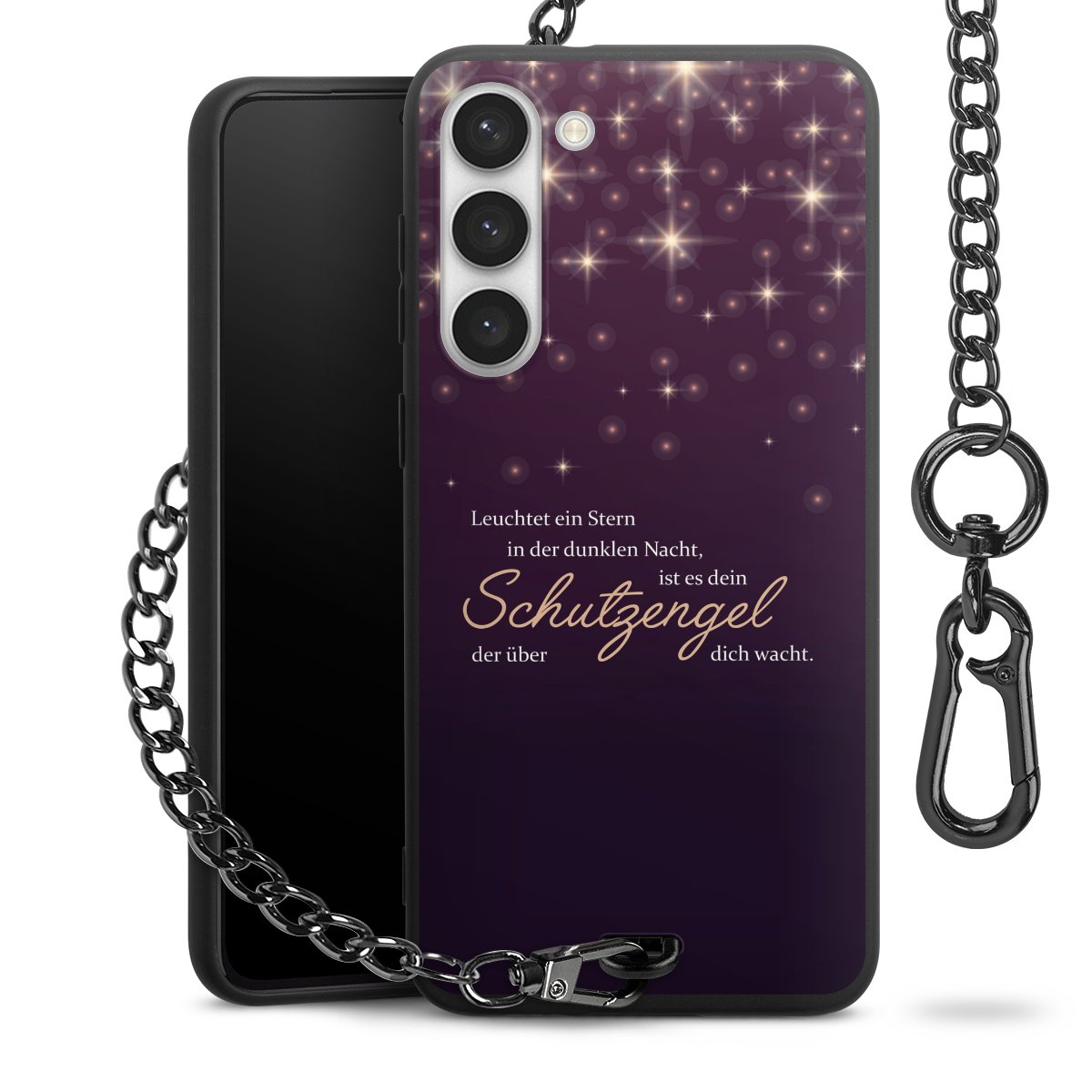 - Mattschwarze Handyhülle mit Metallkette