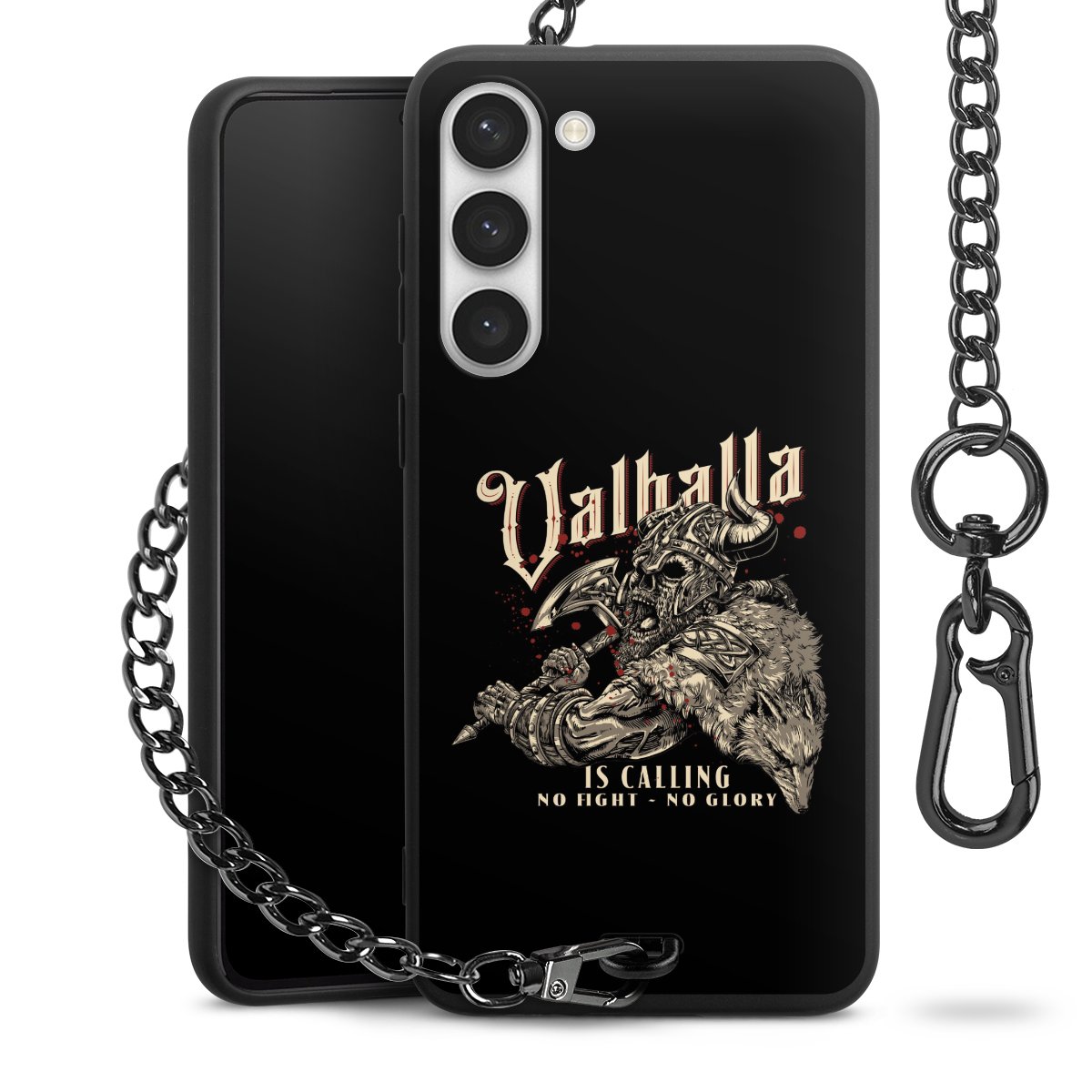 • Mattschwarze Handyhülle mit Metallkette