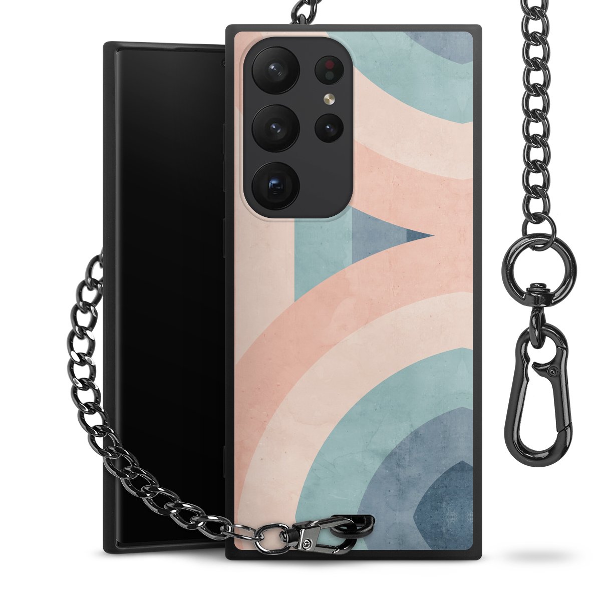 • Mattschwarze Handyhülle mit Metallkette