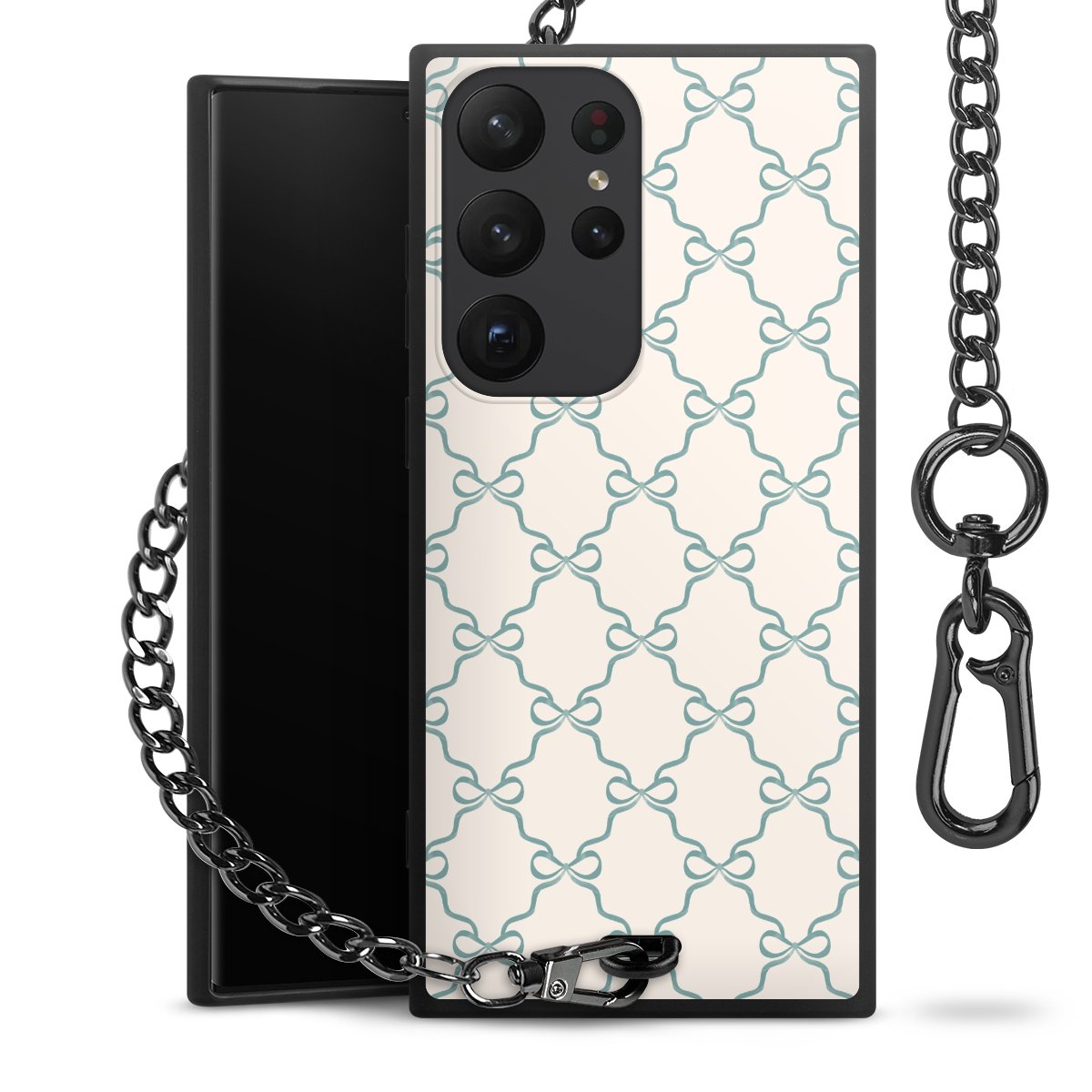 • Mattschwarze Handyhülle mit Metallkette