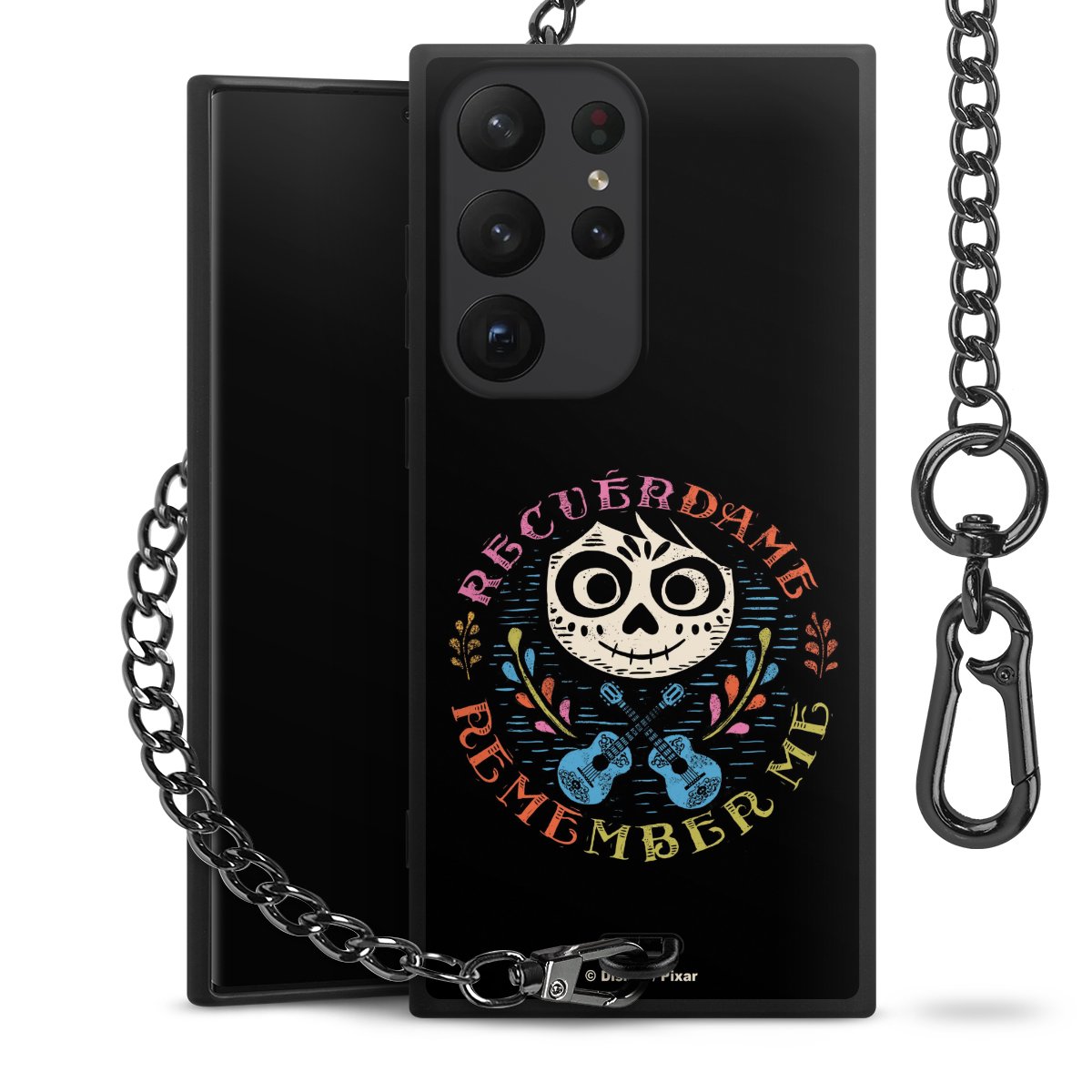 - Mattschwarze Handyhülle mit Metallkette