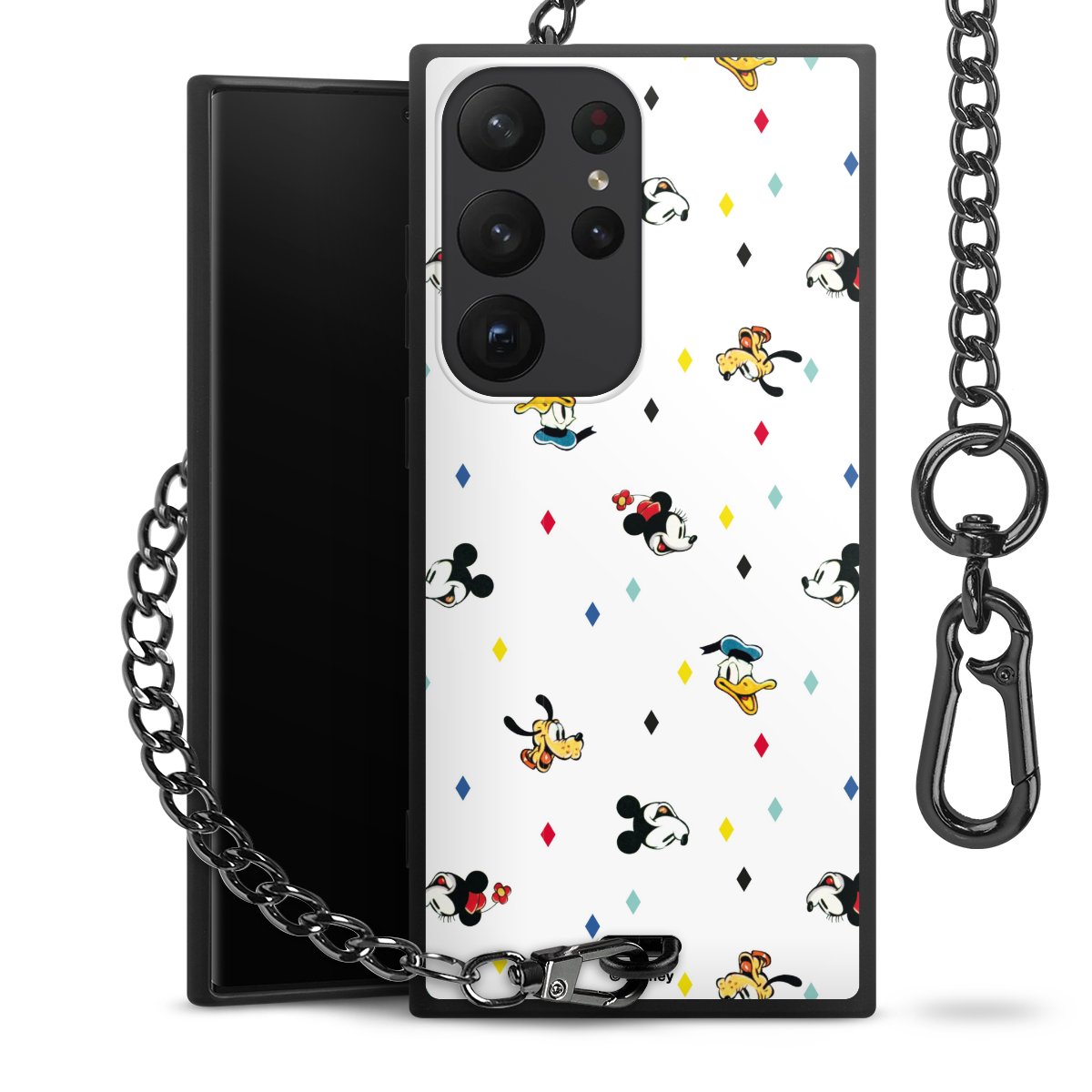 • Mattschwarze Handyhülle mit Metallkette