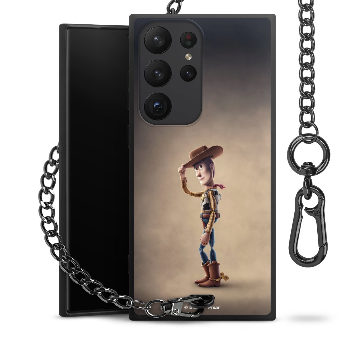- Mattschwarze Handyhülle mit Metallkette