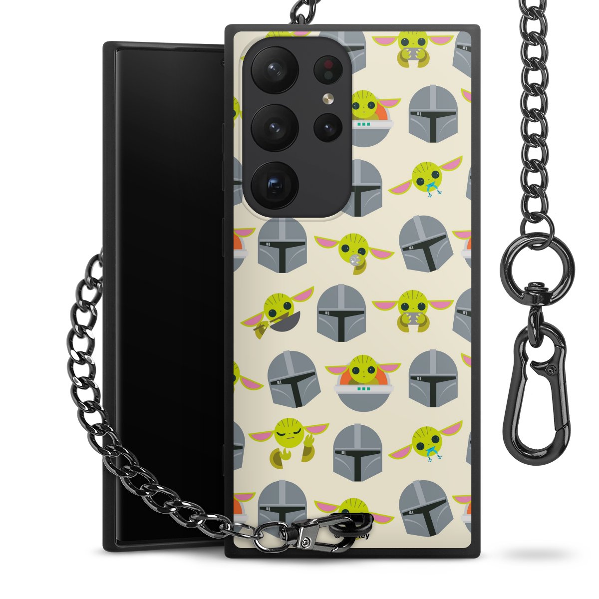 Die mattschwarze Silikon-Handyhülle besteht aus robustem TPU (thermoplastisches Polyurethan). Sie ist flexibel und schützt Dein Smartphone vor Stößen und Kratzern. Die Kette sowie der Karabinerhaken sind aus Metall in Gunmetal-Optik gefertigt. Für dieses Produkt kommen ausschließlich TÜV-geprüfte Materialien zum Einsatz.