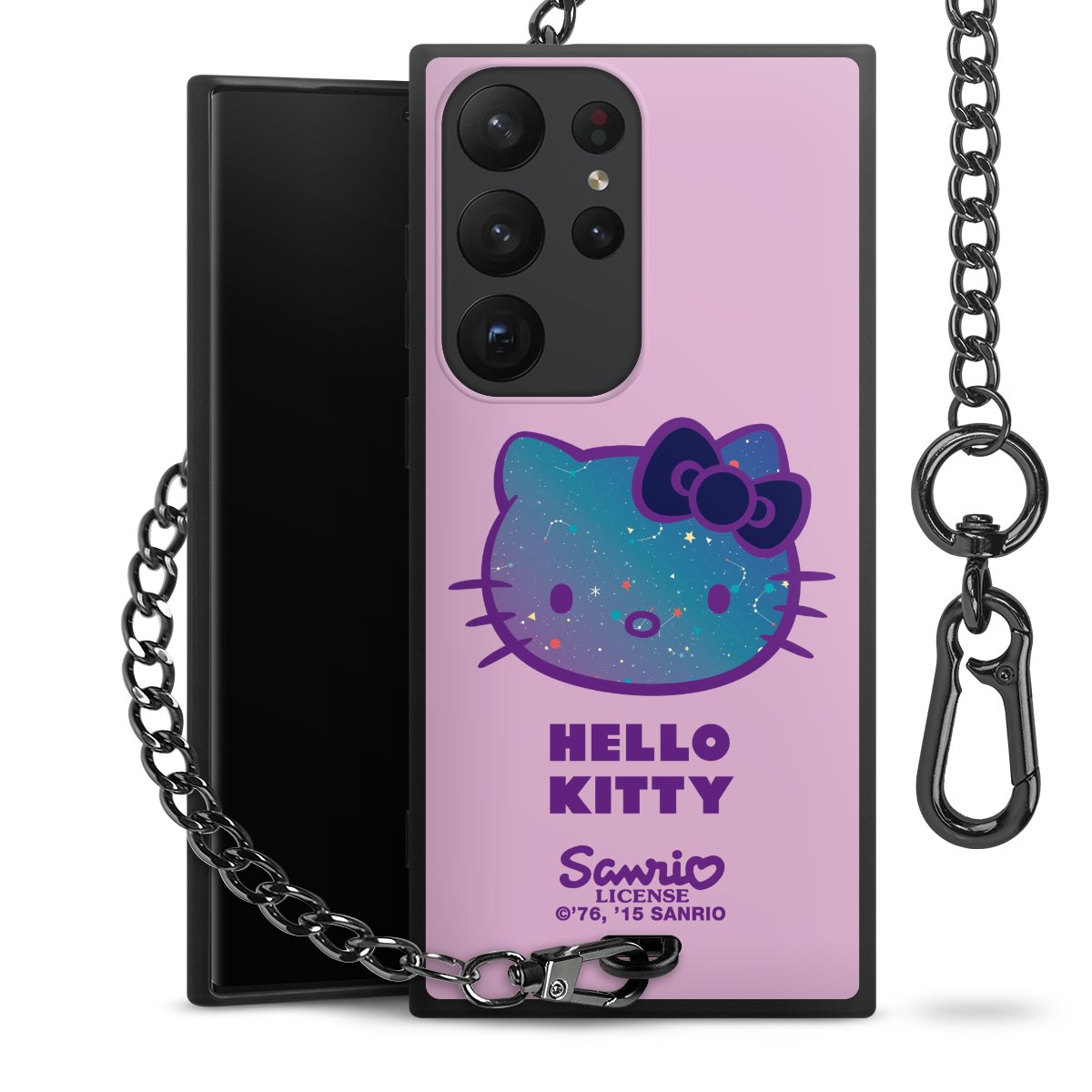 Die Handyhülle verfügt über eine mittig am unteren Rand platzierte Öse, an der die Metallkette stabil befestigt ist. Bestelle die Hülle einfach für Dein Smartphone-Modell, dann passt sie wie angegossen und Du brauchst sie bloß einmal anzudrücken. Handy in die Tasche, Karabiner an den Hosenbund – schon kann die Party starten.