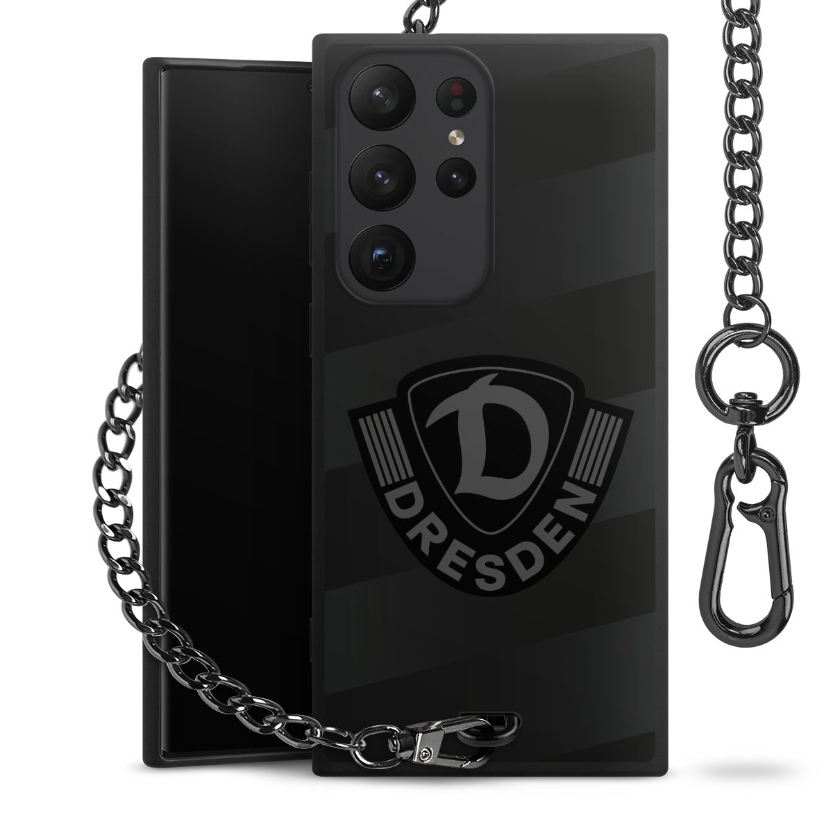 • Mattschwarze Handyhülle mit Metallkette