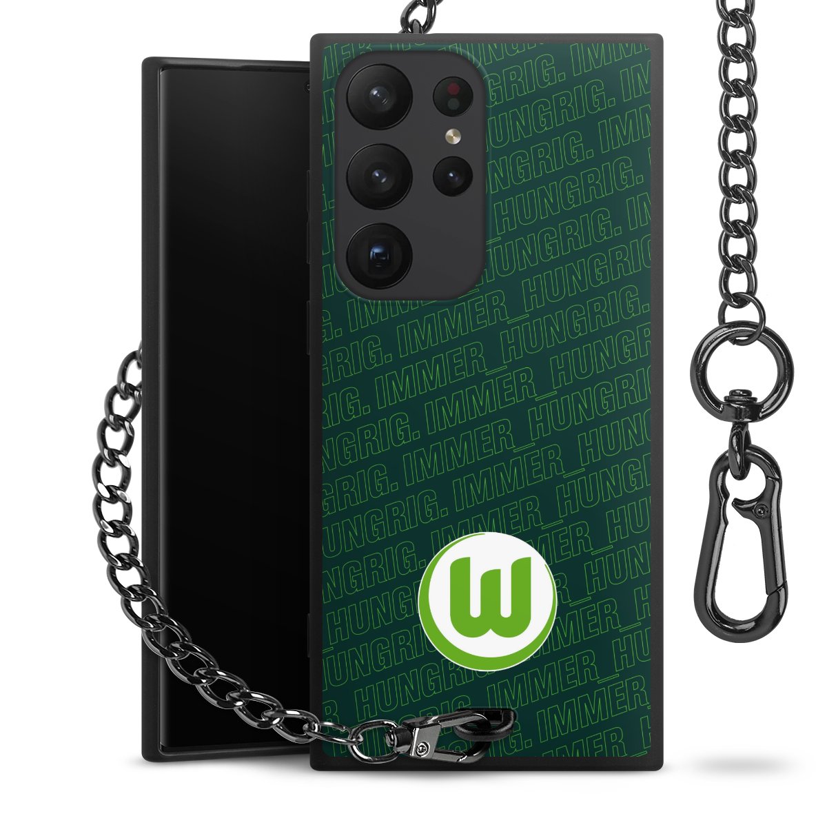 Die mattschwarze Silikon-Handyhülle besteht aus robustem TPU (thermoplastisches Polyurethan). Sie ist flexibel und schützt Dein Smartphone vor Stößen und Kratzern. Die Kette sowie der Karabinerhaken sind aus Metall in Gunmetal-Optik gefertigt. Für dieses Produkt kommen ausschließlich TÜV-geprüfte Materialien zum Einsatz.