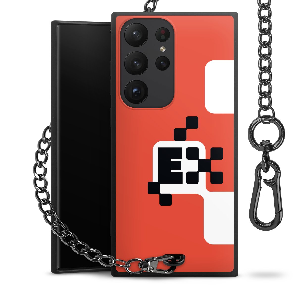• Mattschwarze Handyhülle mit Metallkette