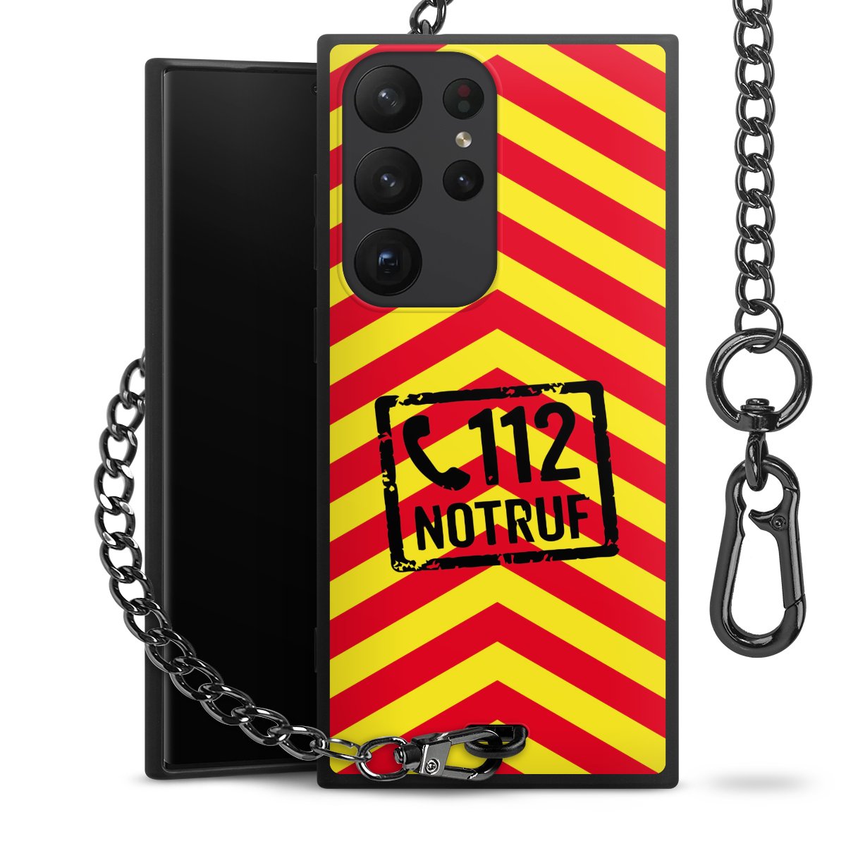 Die mattschwarze Silikon-Handyhülle besteht aus robustem TPU (thermoplastisches Polyurethan). Sie ist flexibel und schützt Dein Smartphone vor Stößen und Kratzern. Die Kette sowie der Karabinerhaken sind aus Metall in Gunmetal-Optik gefertigt. Für dieses Produkt kommen ausschließlich TÜV-geprüfte Materialien zum Einsatz.