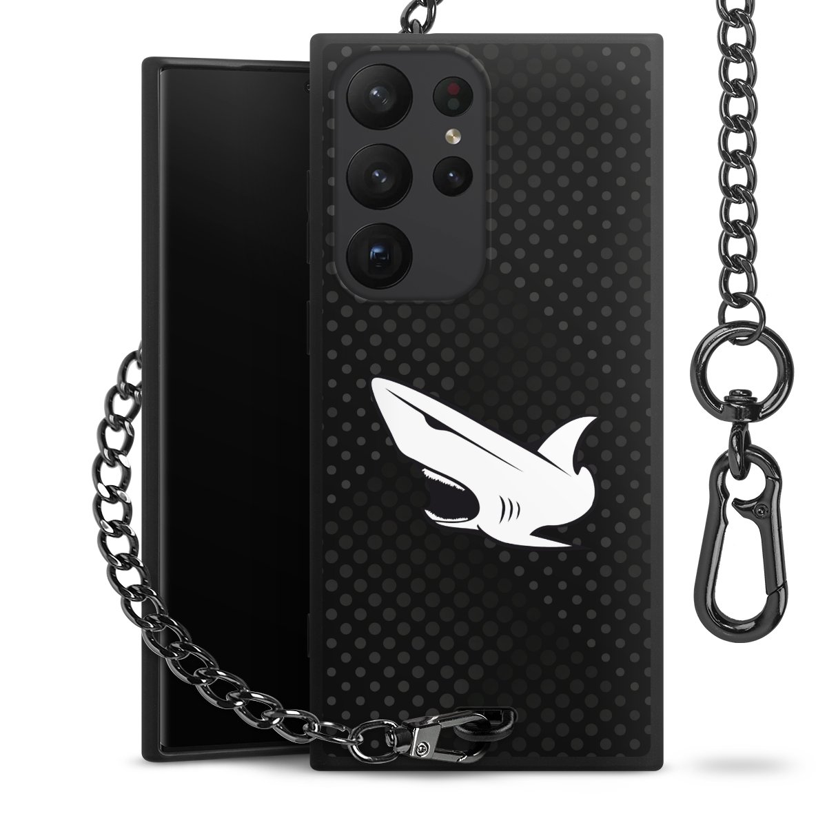 • Mattschwarze Handyhülle mit Metallkette