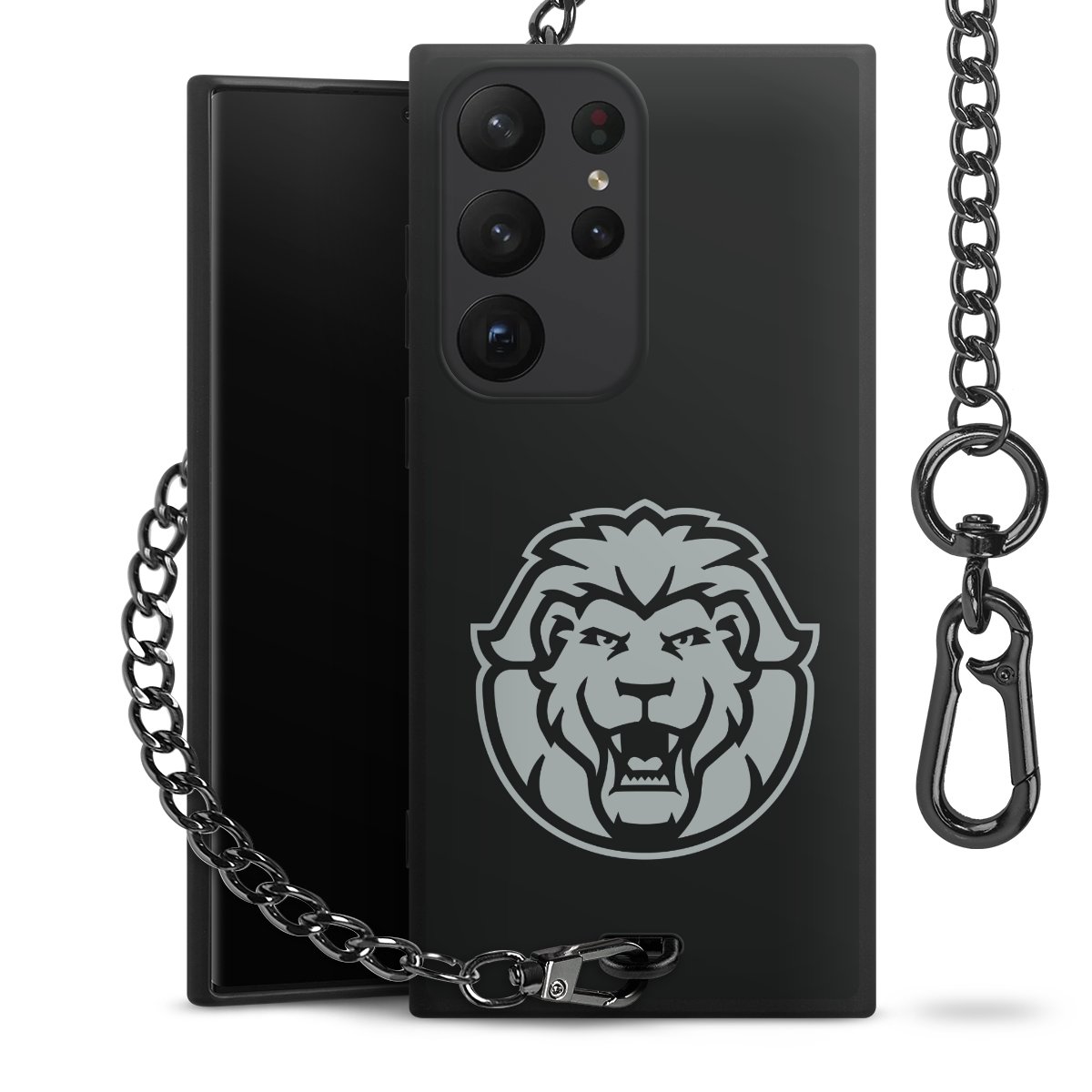 - Mattschwarze Handyhülle mit Metallkette