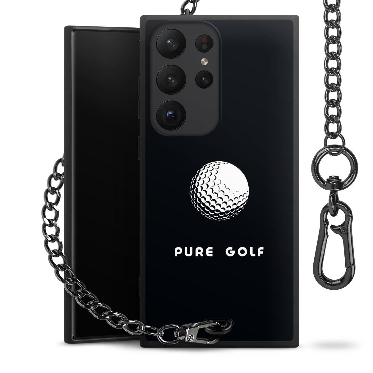 • Mattschwarze Handyhülle mit Metallkette