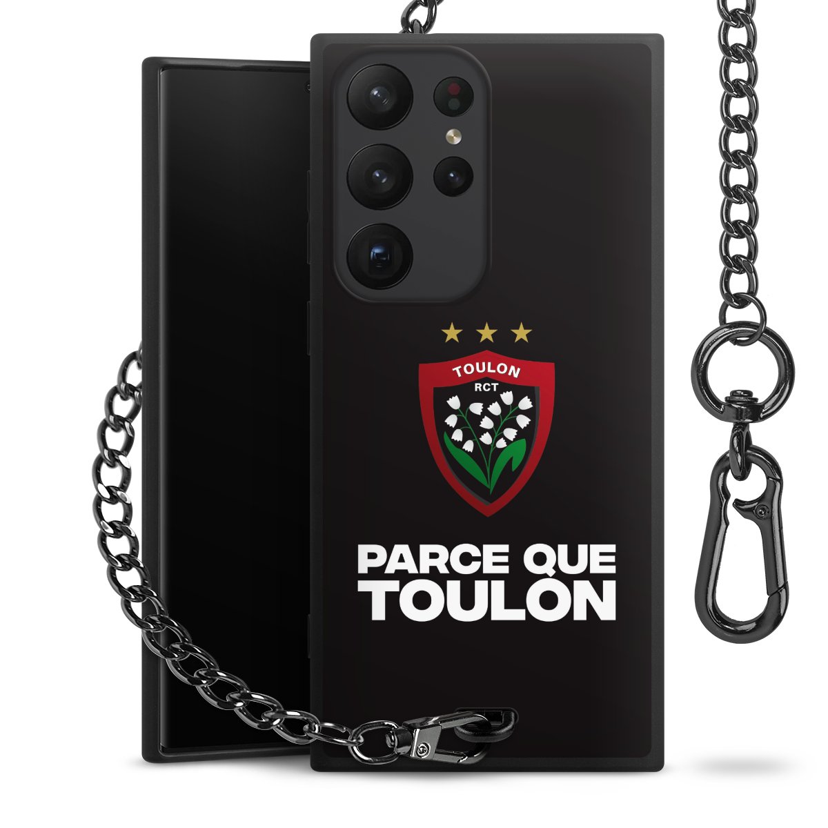 • Mattschwarze Handyhülle mit Metallkette