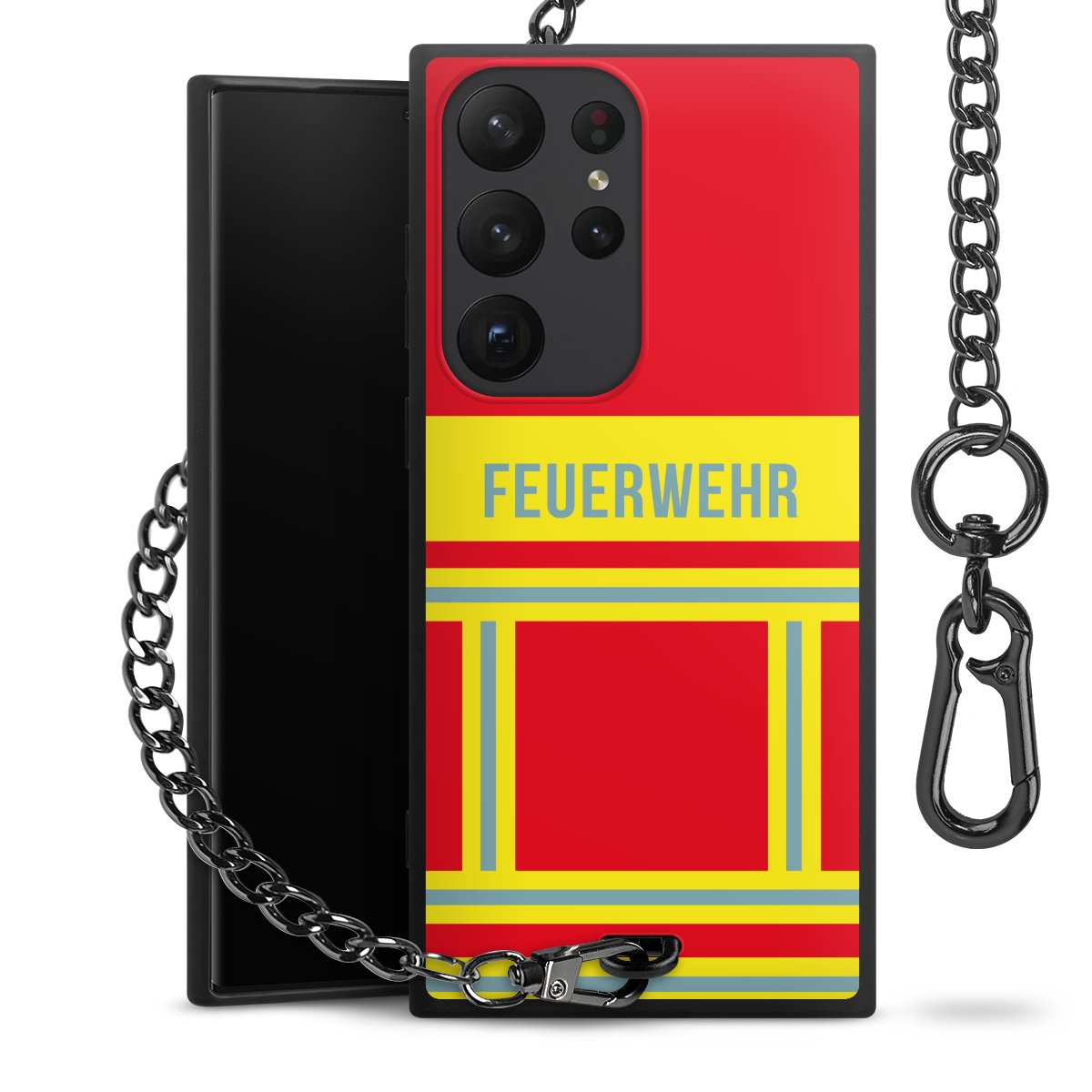 - Mattschwarze Handyhülle mit Metallkette