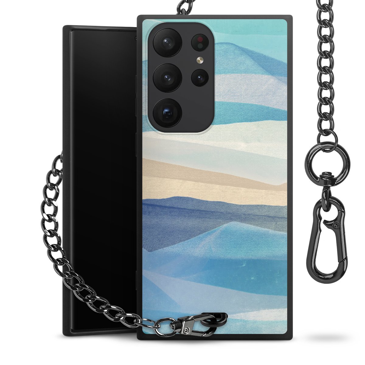 • Mattschwarze Handyhülle mit Metallkette