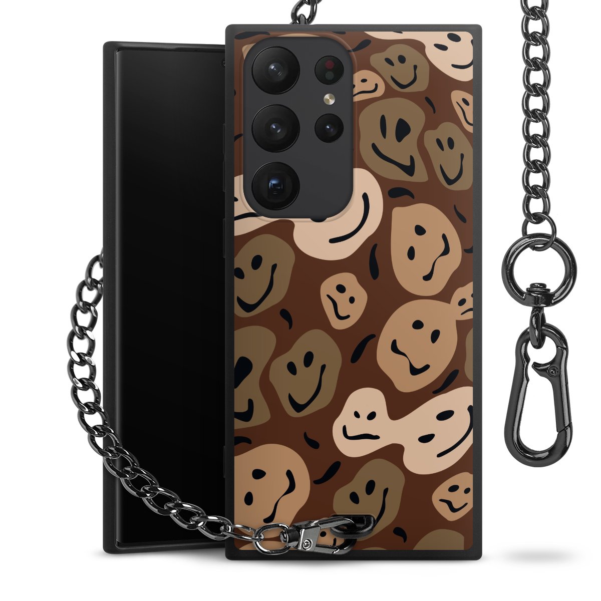 - Mattschwarze Handyhülle mit Metallkette