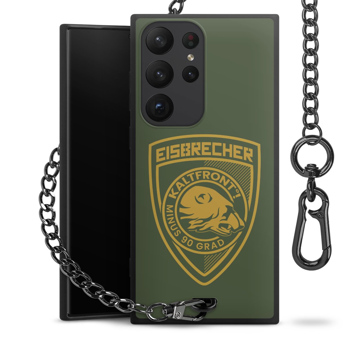 • Mattschwarze Handyhülle mit Metallkette