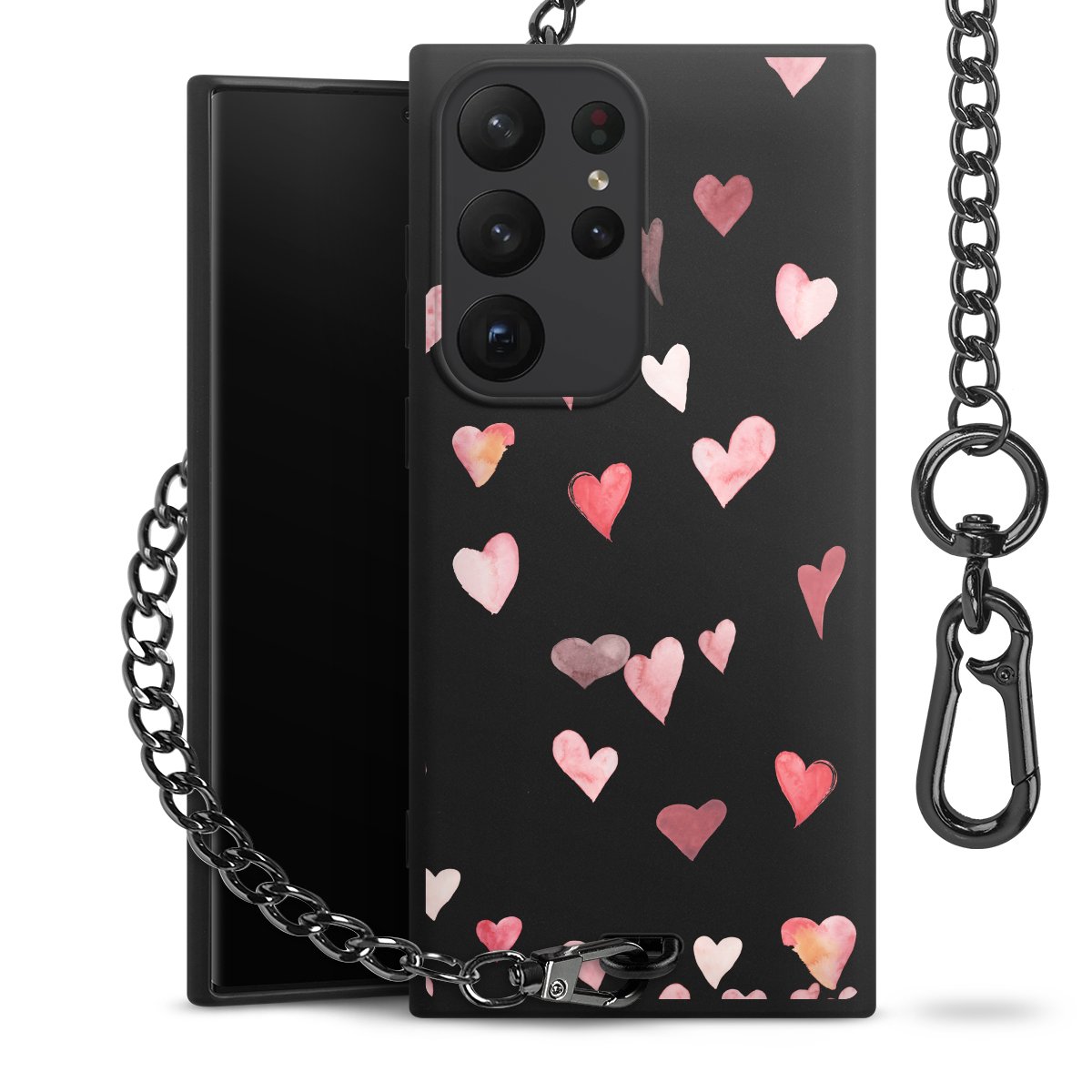 • Mattschwarze Handyhülle mit Metallkette