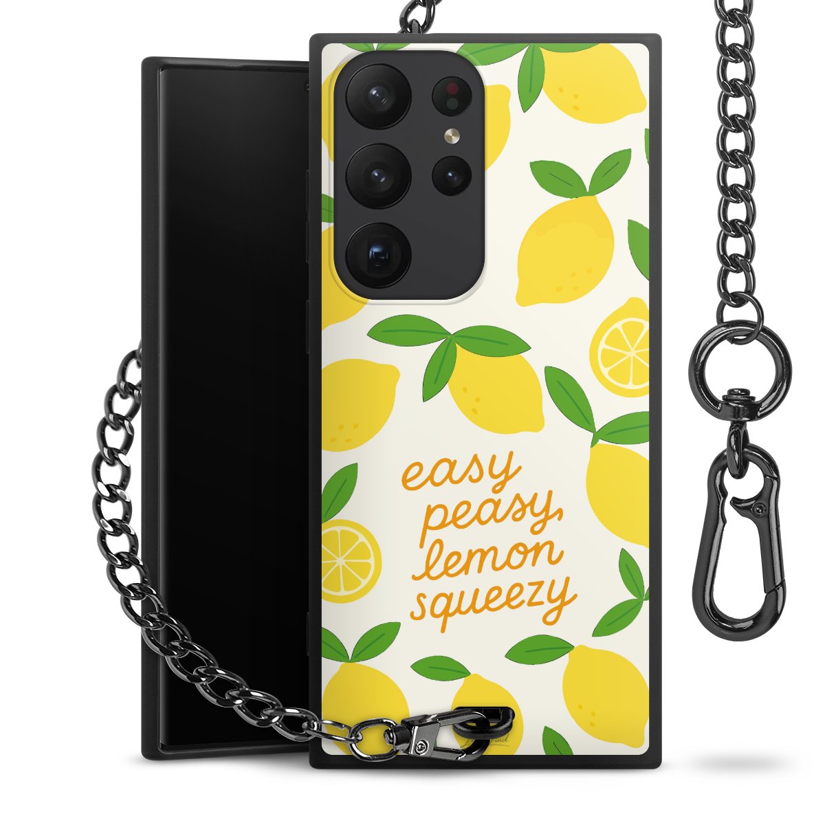 - Mattschwarze Handyhülle mit Metallkette