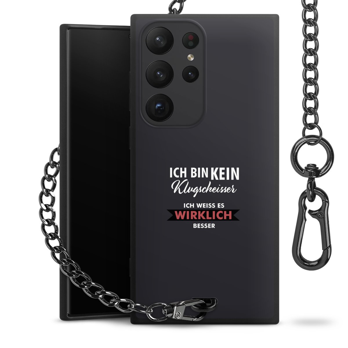 - Mattschwarze Handyhülle mit Metallkette