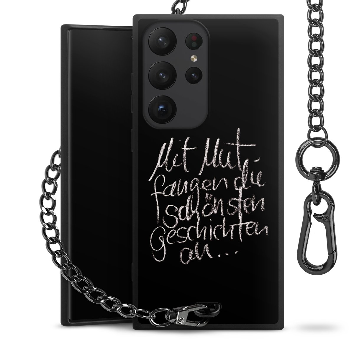 • Mattschwarze Handyhülle mit Metallkette