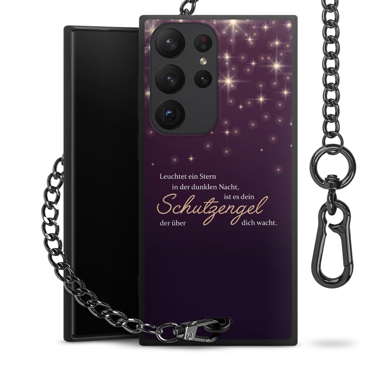 - Mattschwarze Handyhülle mit Metallkette