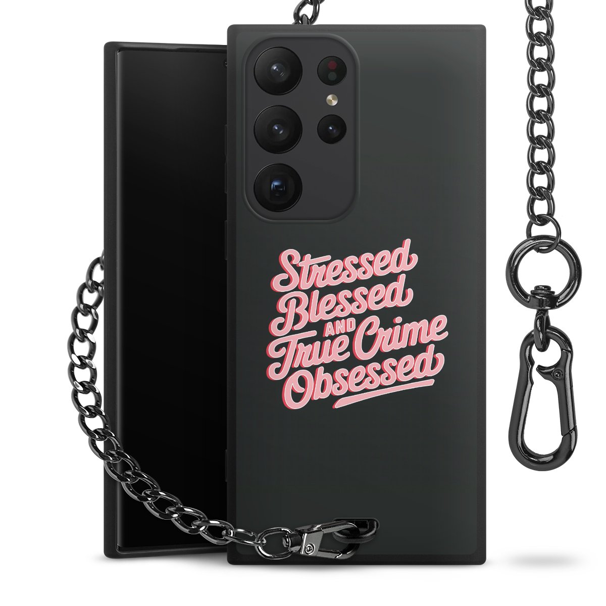 • Mattschwarze Handyhülle mit Metallkette