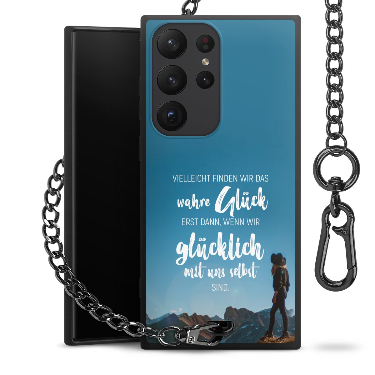 • Mattschwarze Handyhülle mit Metallkette
