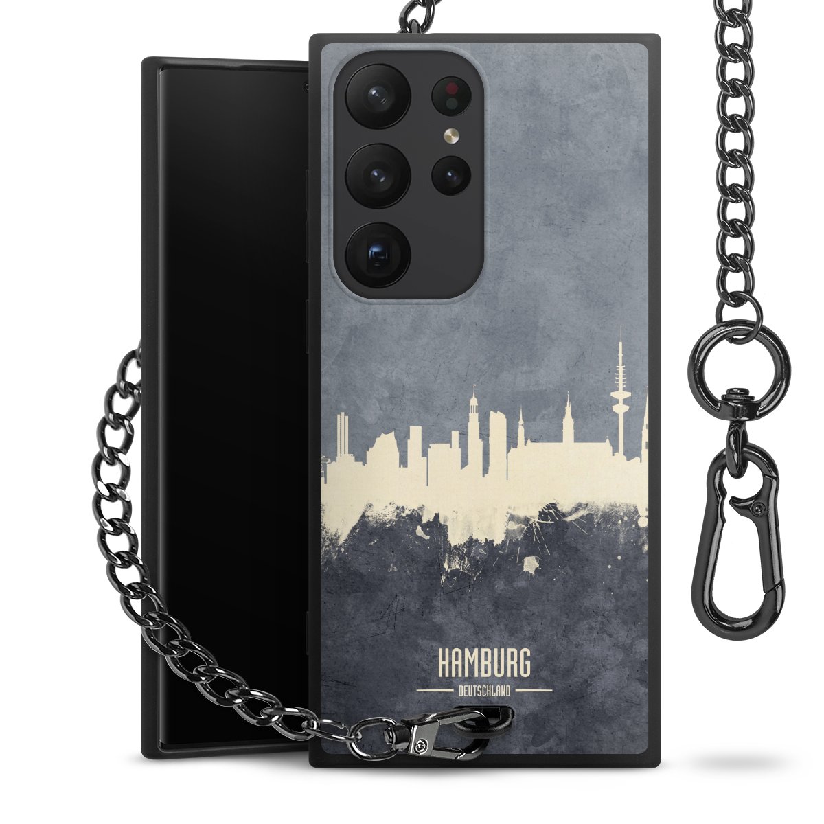 • Mattschwarze Handyhülle mit Metallkette