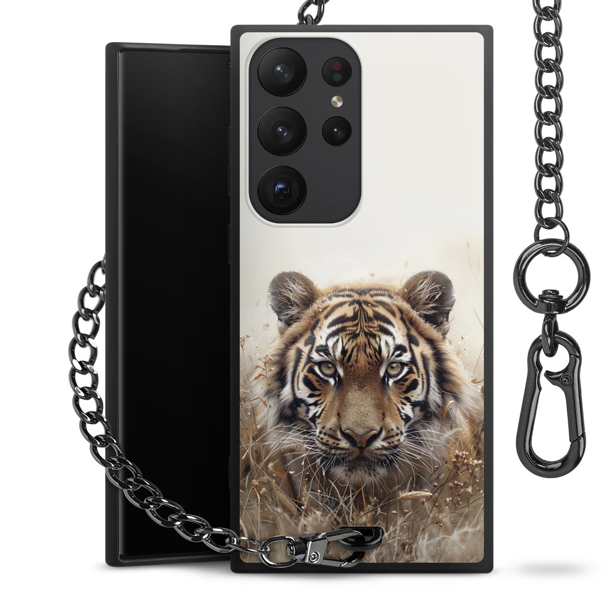 • Mattschwarze Handyhülle mit Metallkette